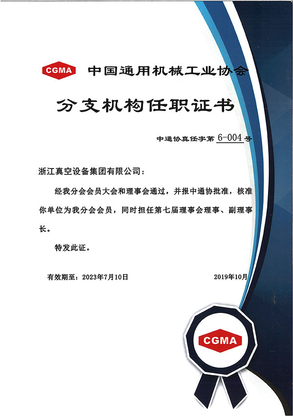 • 中國通用機(jī)械工業(yè)協(xié)會(huì)會(huì)員證書
